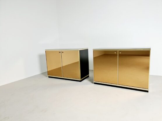 Sideboards by Renato Zevi. Gold mirrored glass, black opal glass top and brass details. Also for sale per piece.