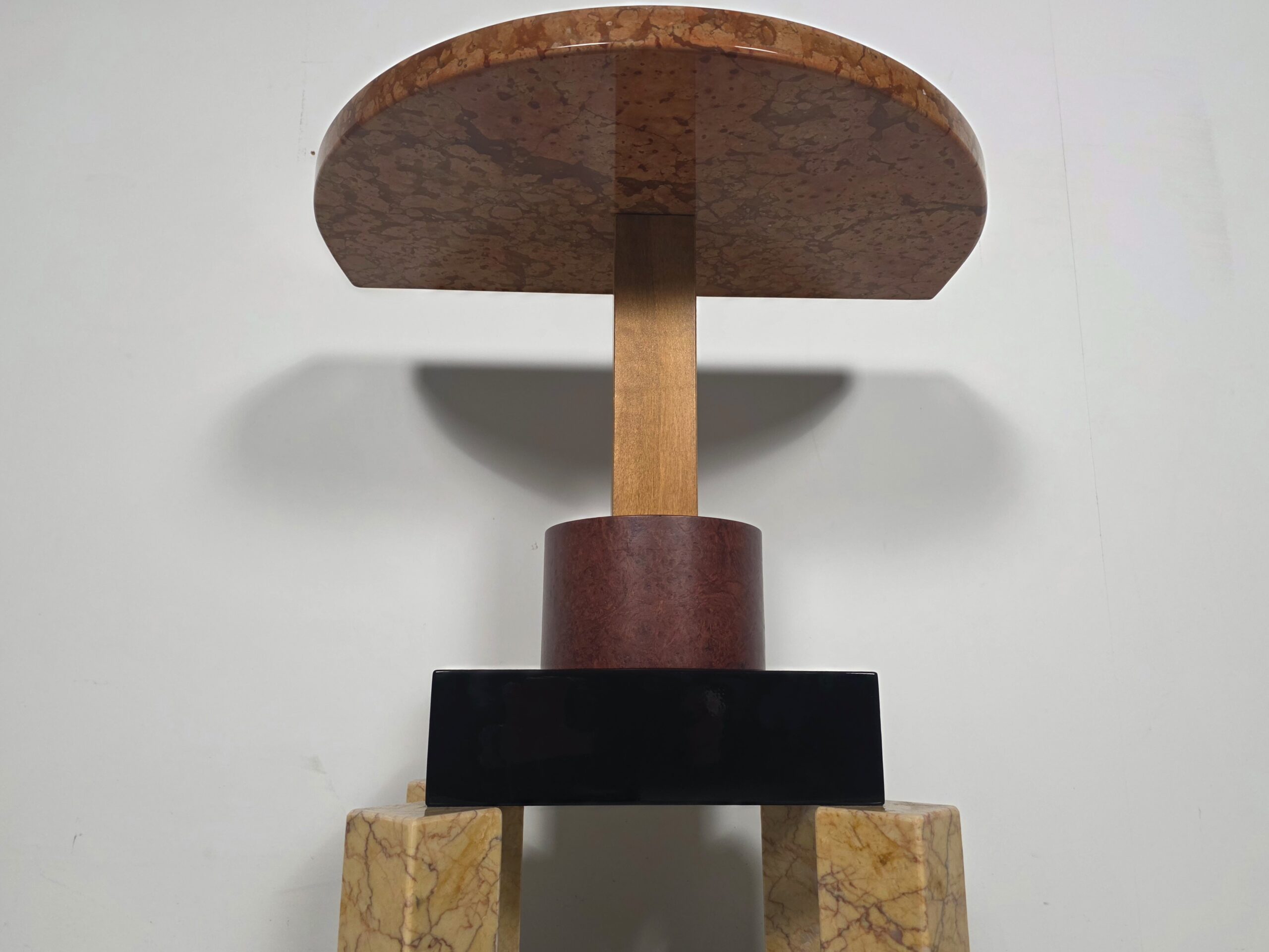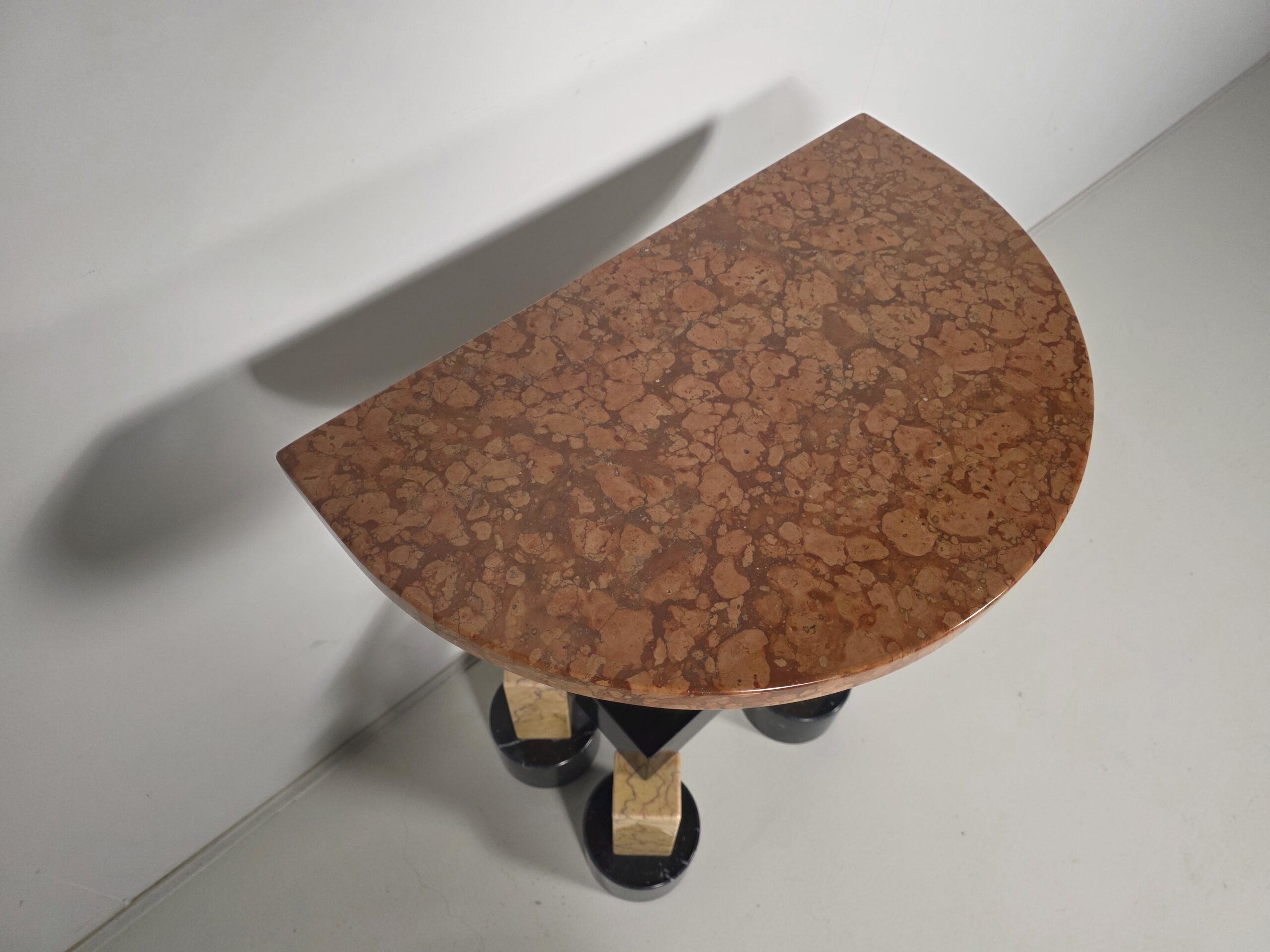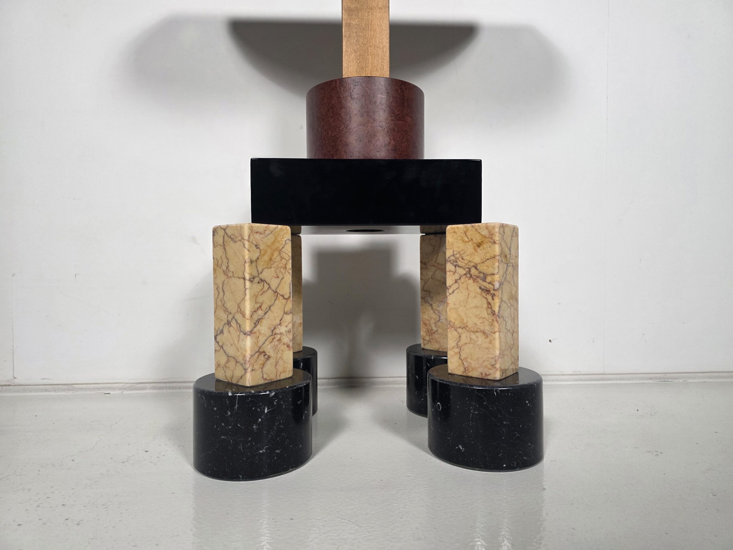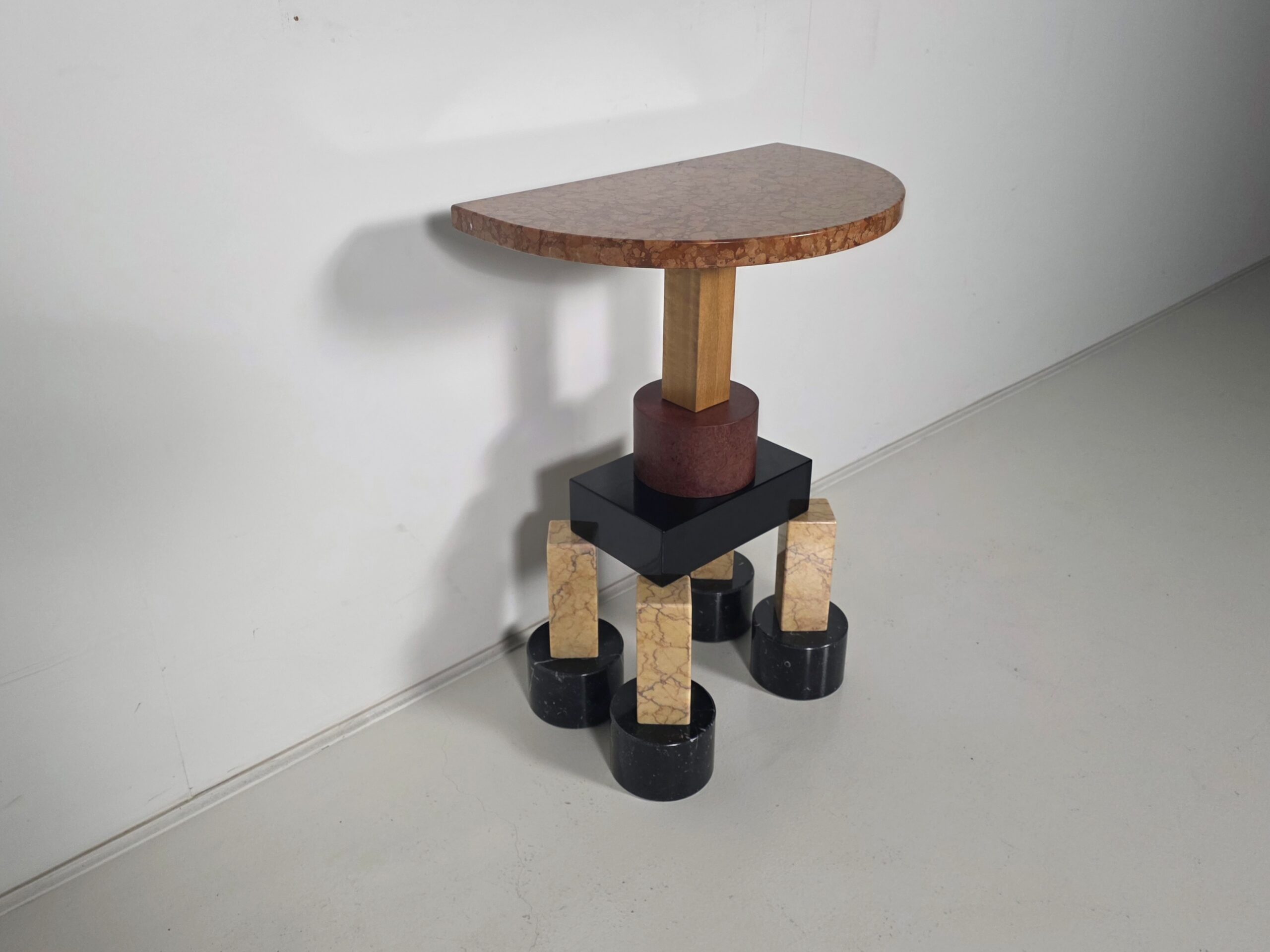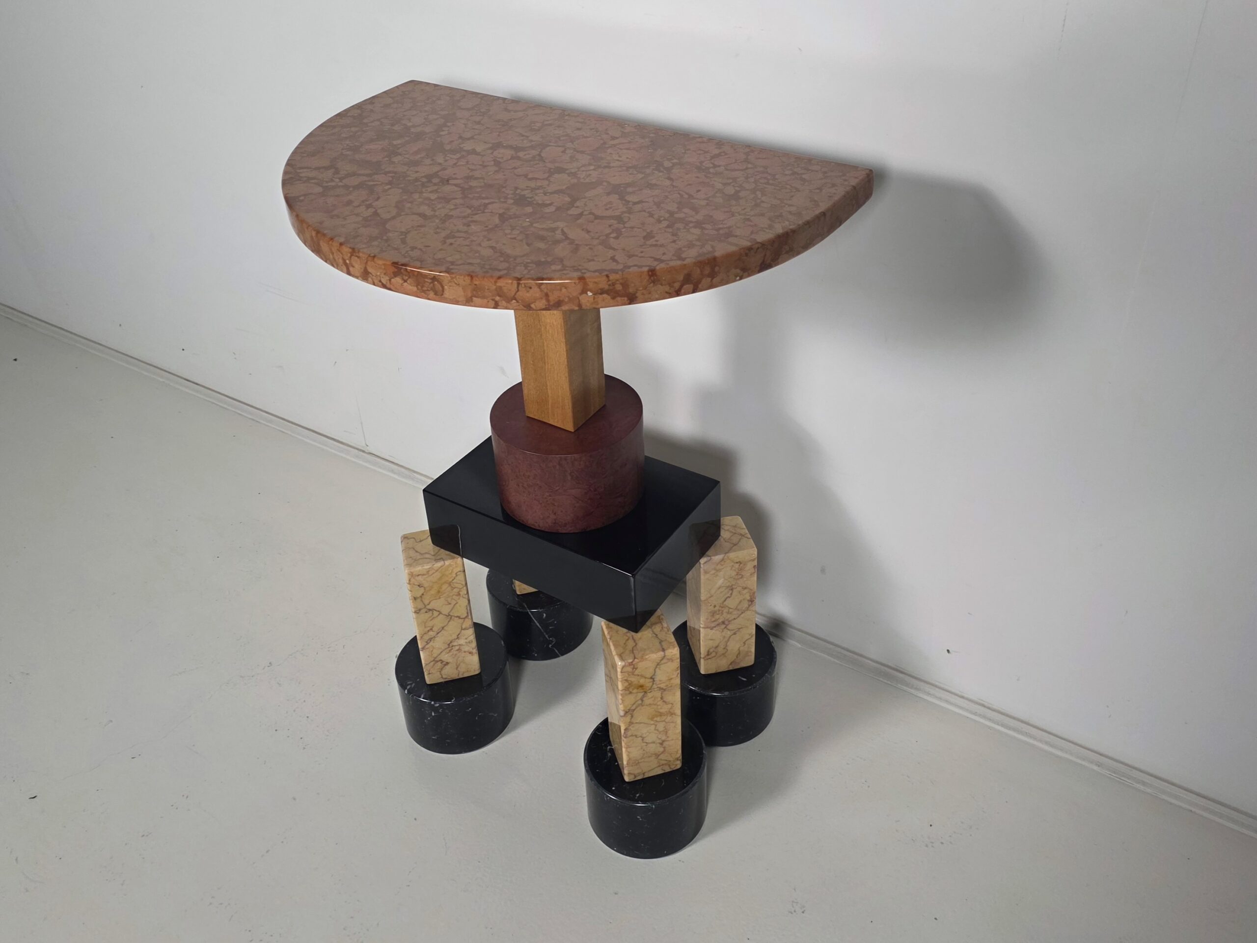 A striking expression of postmodern design, created by Ettore Sottsass at the height of his creative experimentation. Bold, architectural, and unapologetically graphic, Demistella transforms the idea of a console table into a sculptural presence. Defined by strong geometries, contrasting colors, and playful proportions, the console reflects Sottsass’s belief that furniture should communicate emotion, culture, and personality. Not just function. Whether placed in an entryway, gallery-like living space, or design-focused interior, the Demistella Console commands attention. It pairs especially well with minimalist surroundings, where its expressive character can stand out and define the space
