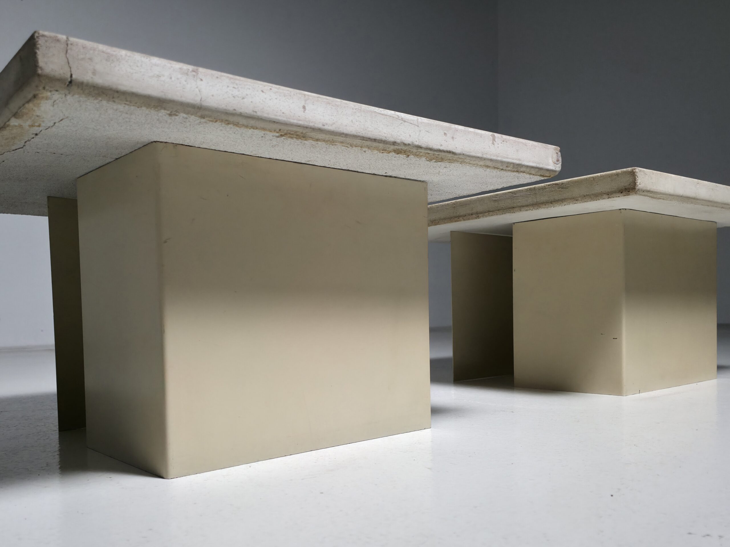 Pair of cream toned coffee tables by Paul Kingma, the Netherlands, 1982