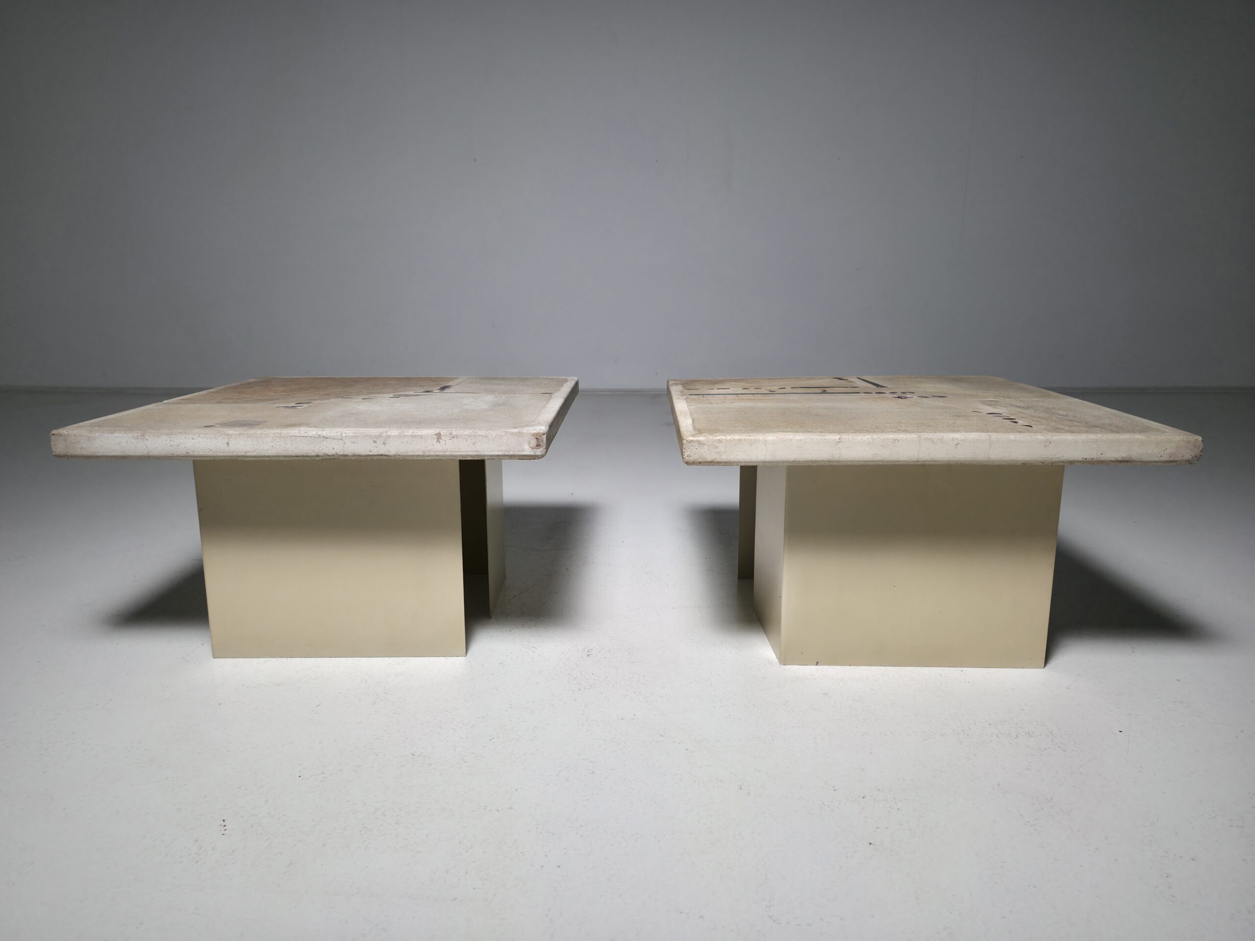 A rare and highly collectible pair of coffee tables by Paul Kingma, dated 1982.