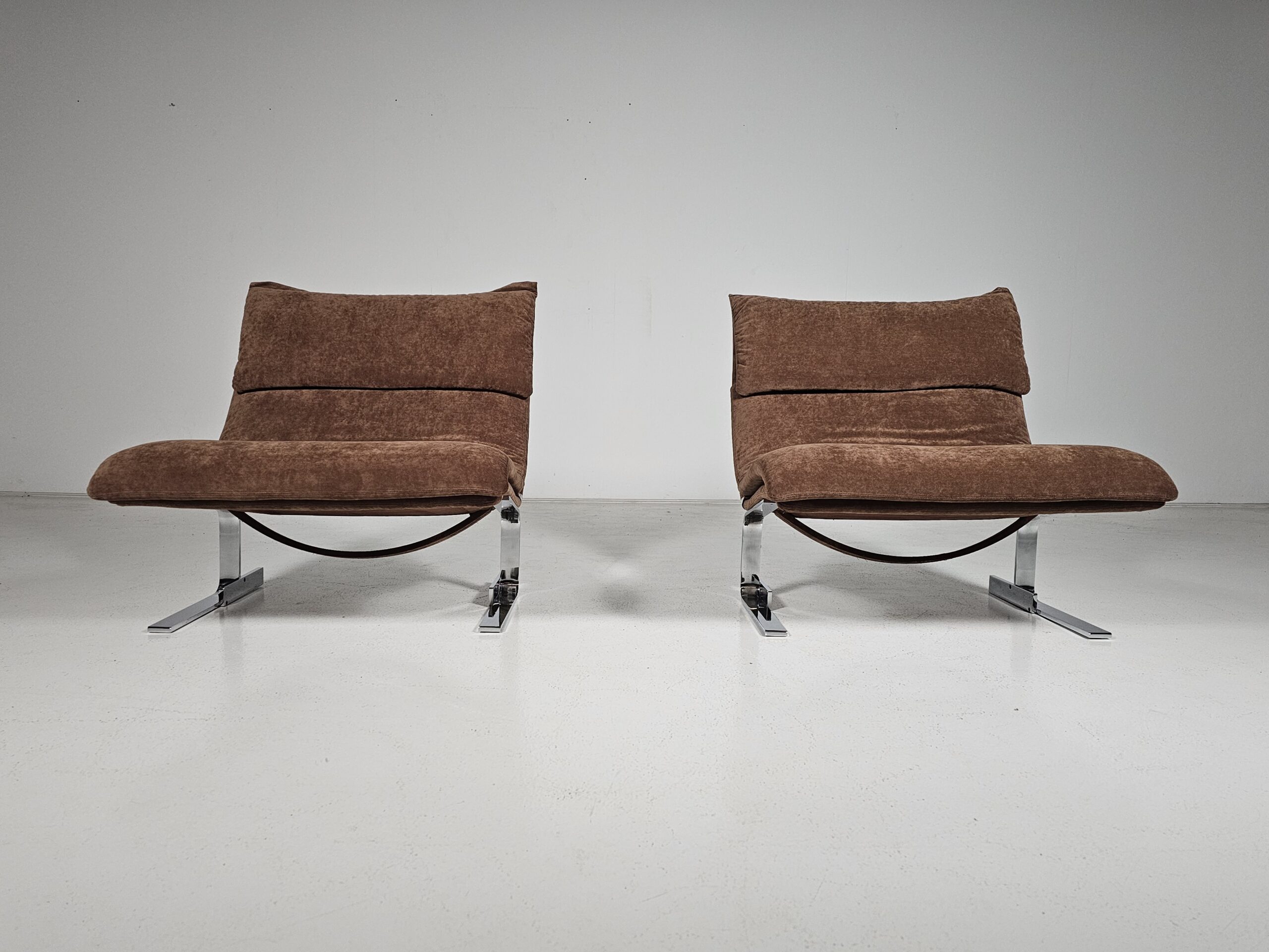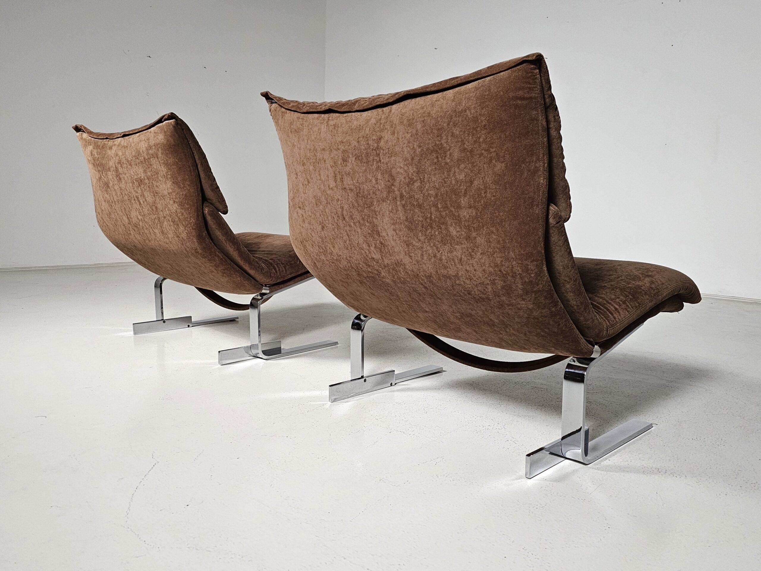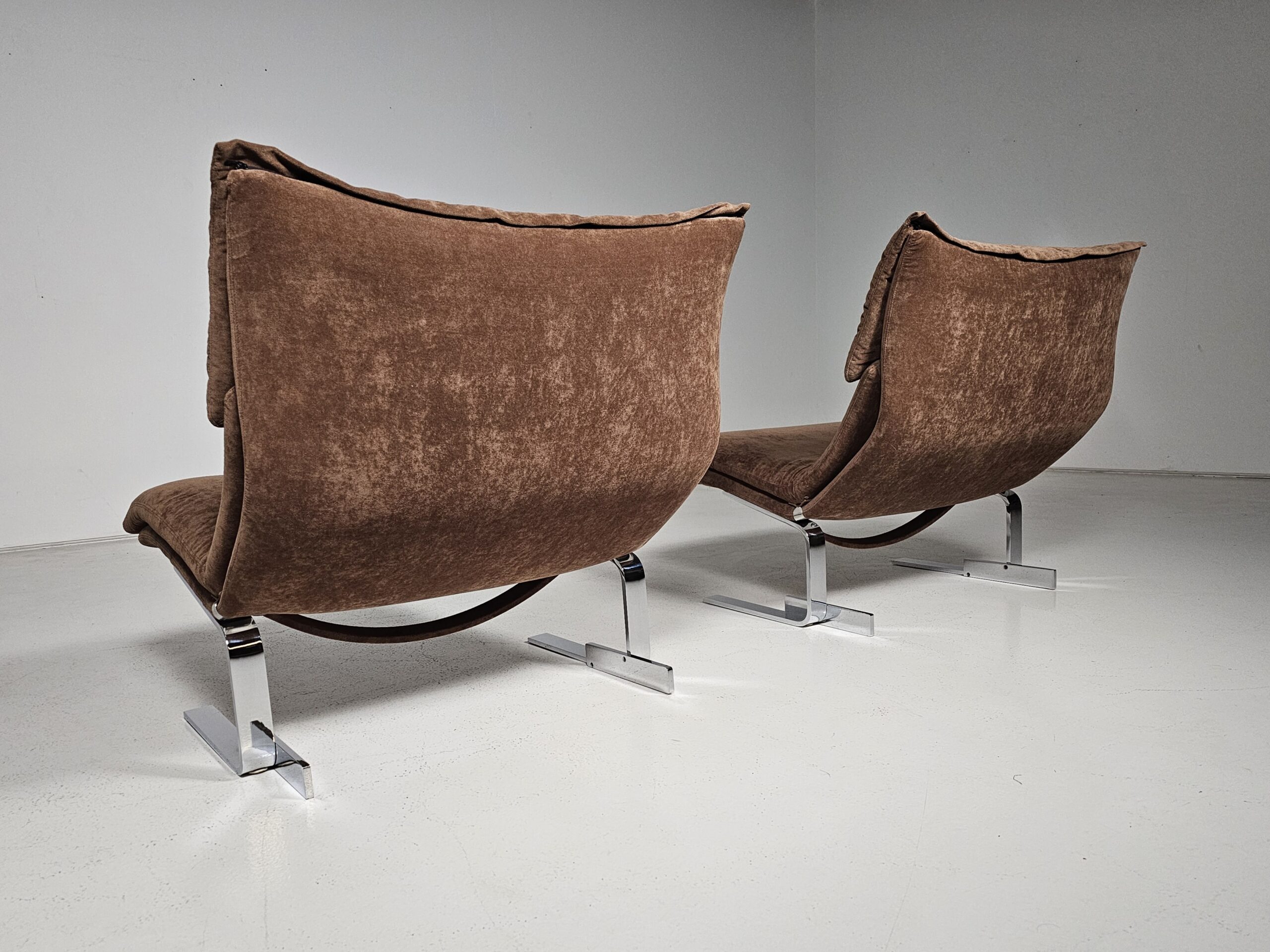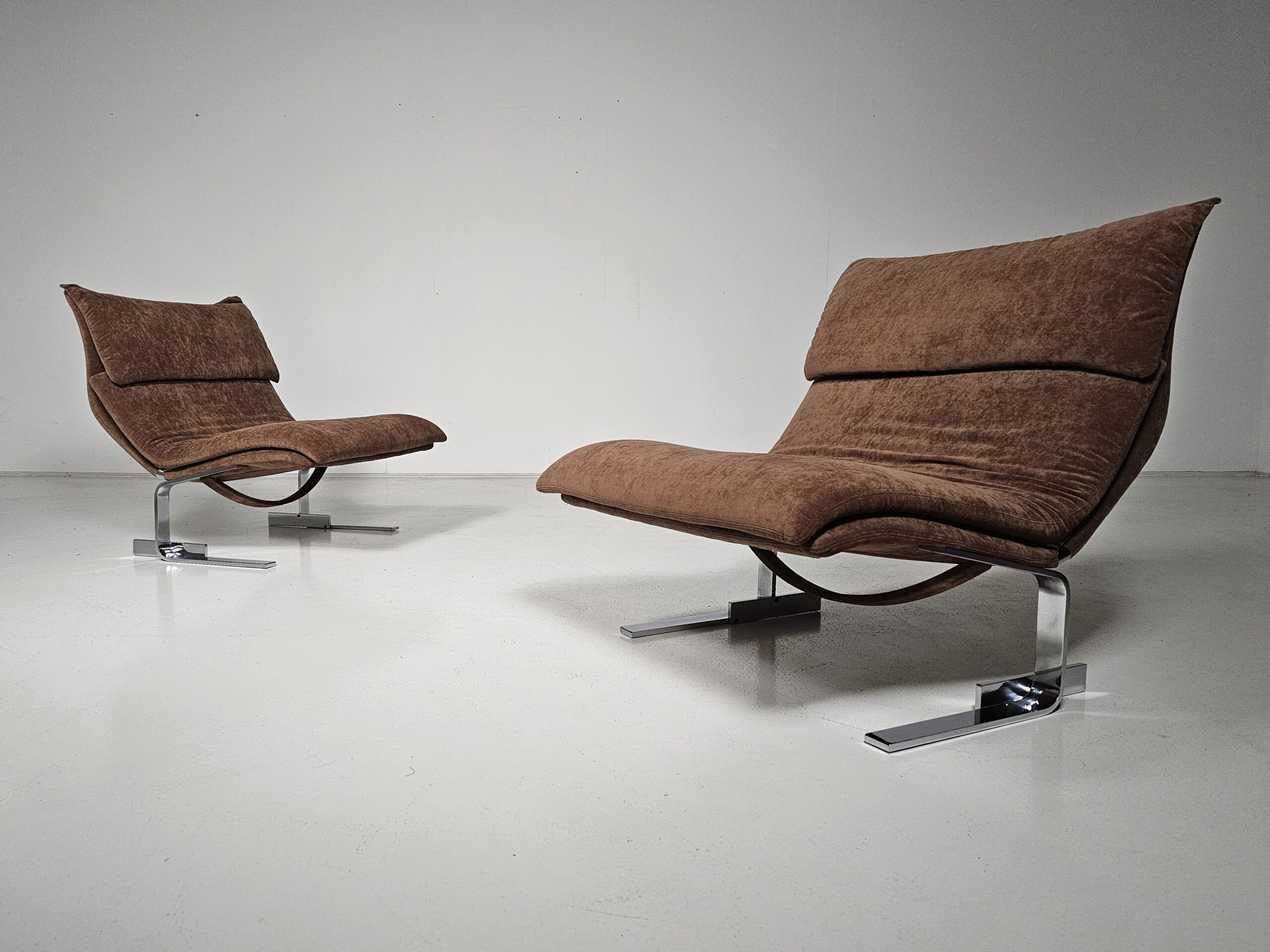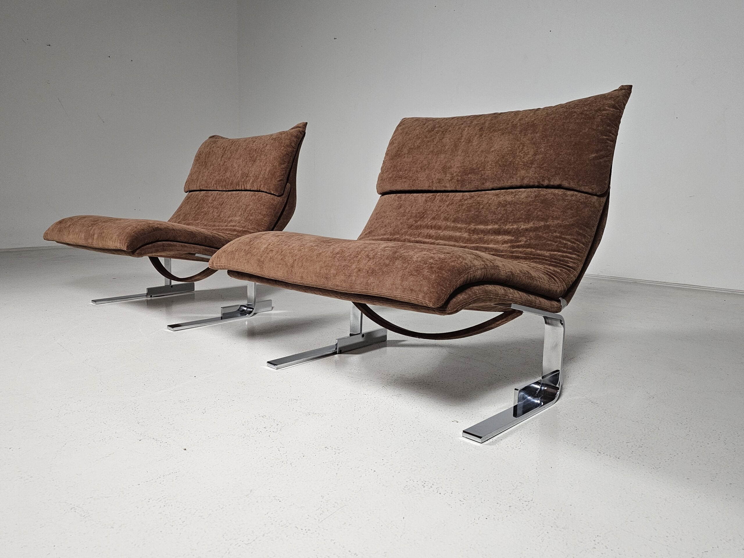 Pair of Onda lounge chairs in brown fabric by Giovanni Offredi for Saporiti, 1970s