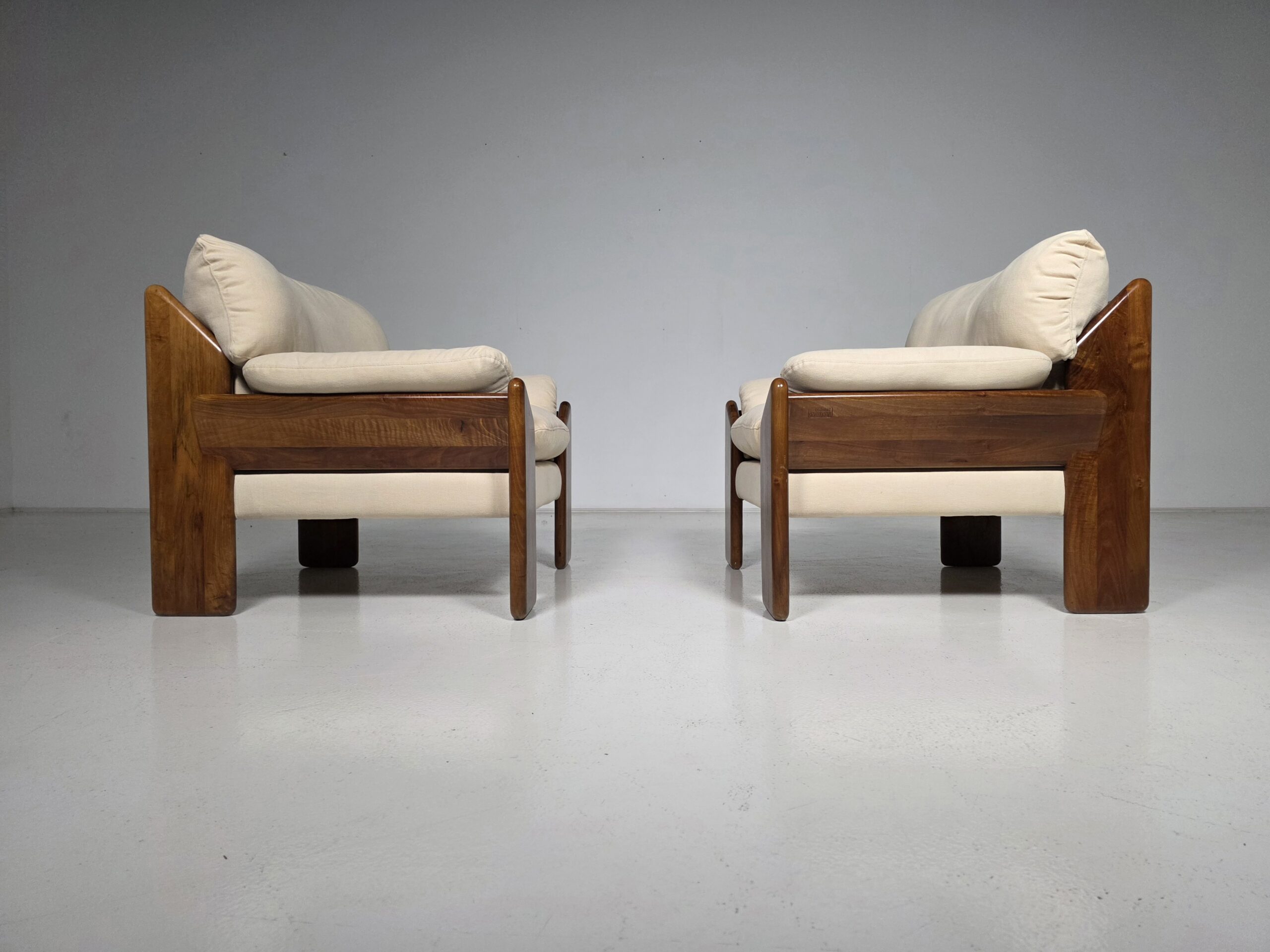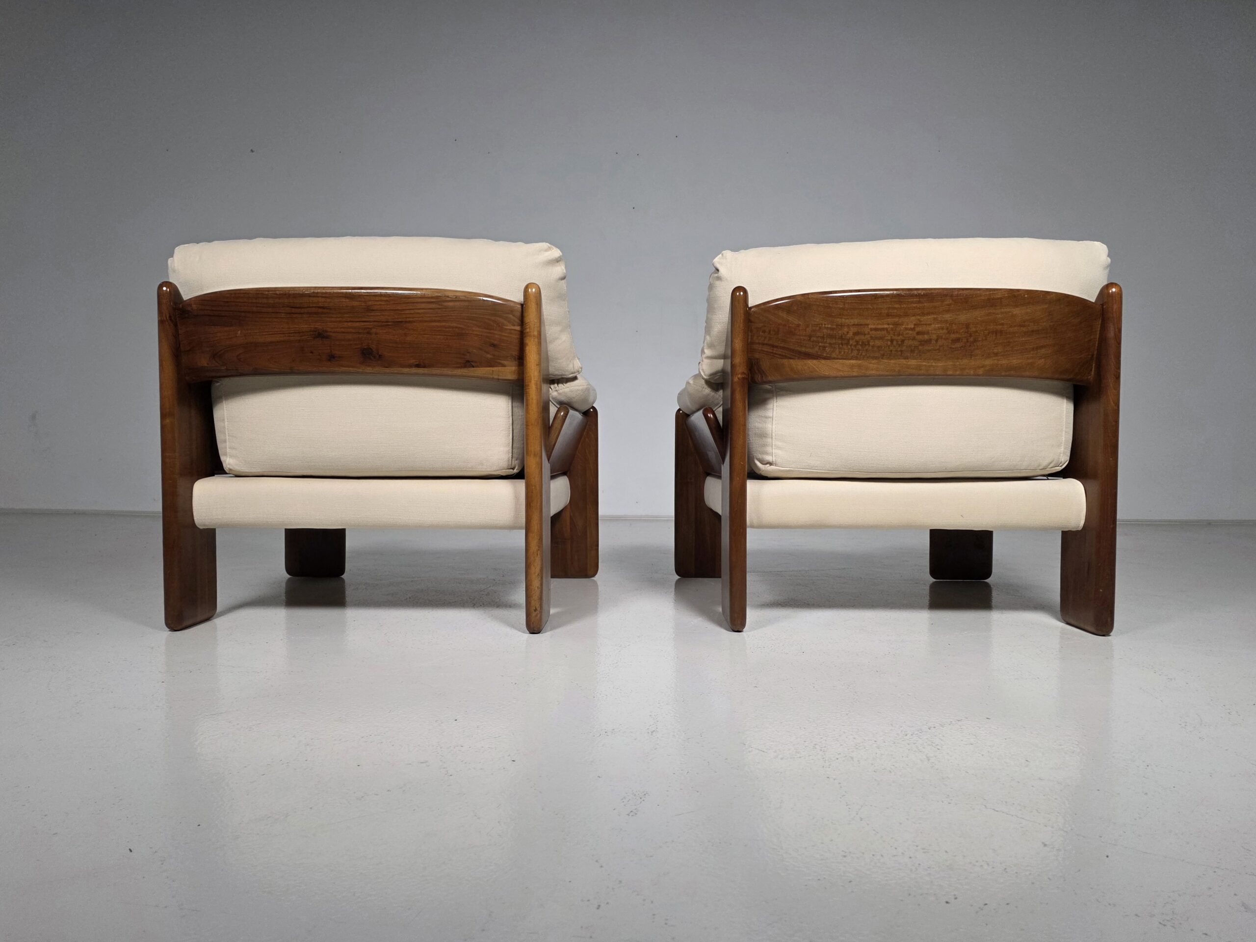 Sapporo” nutwood Armchairs by Mario Marenco for Mobil Girgi, 1970s